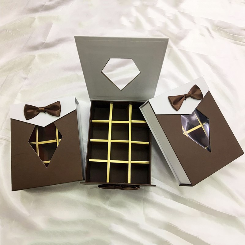 luxury heart shaped window chocolate box with dividers mini valentine day chocolate packaging box custom